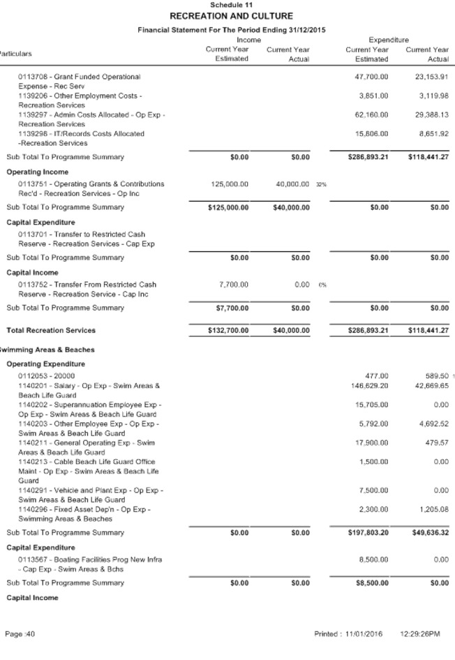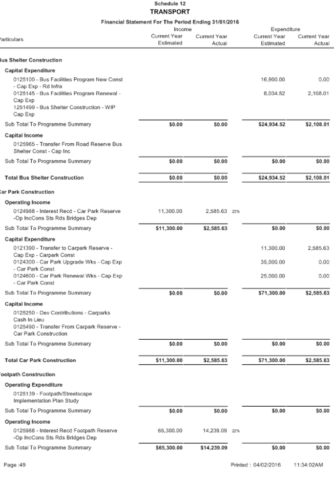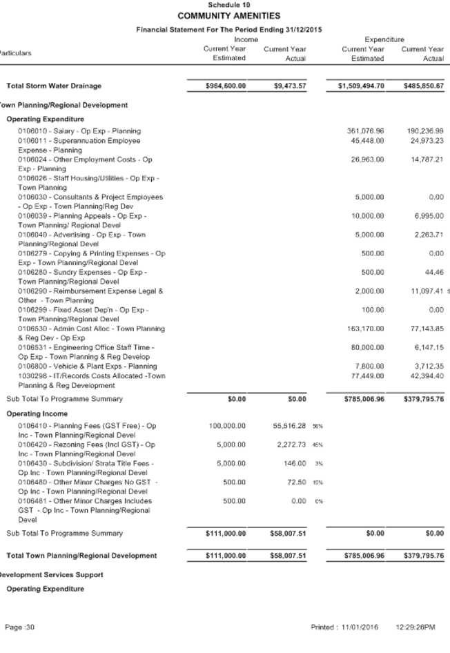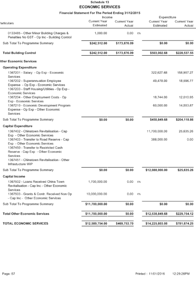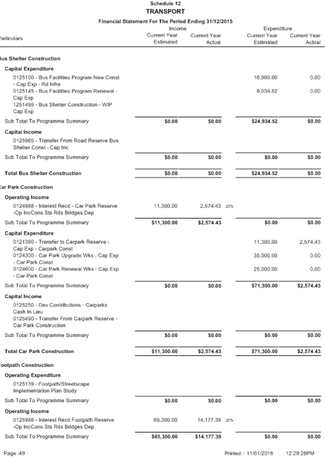 Between 1 January and 31 March, a local government is to carry out a review of its annual budget for that year and this is to be submitted to the Council within 30 days of completion. The terms of reference of the Audit Committee include a review of the half yearly financial results compared to budget from 1 July 2015 to 31 December 2015.
