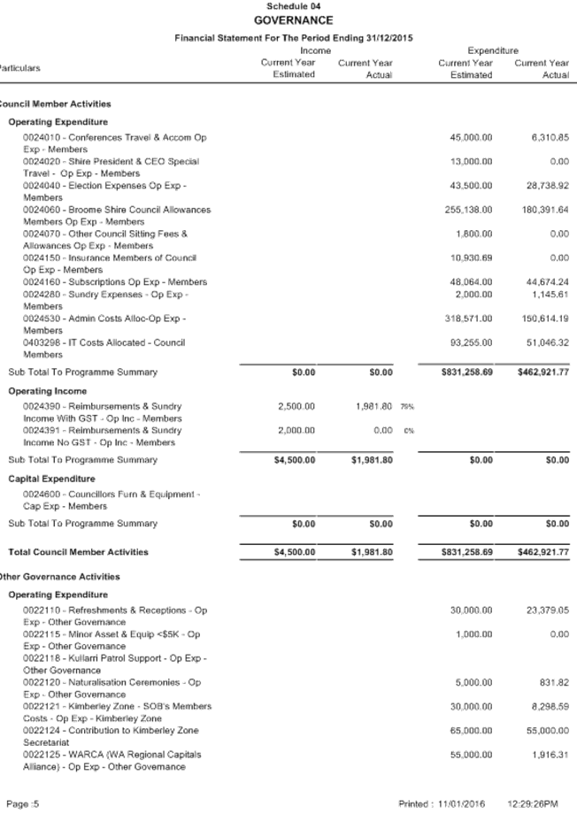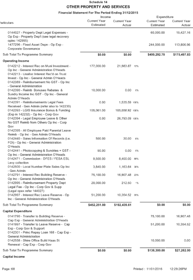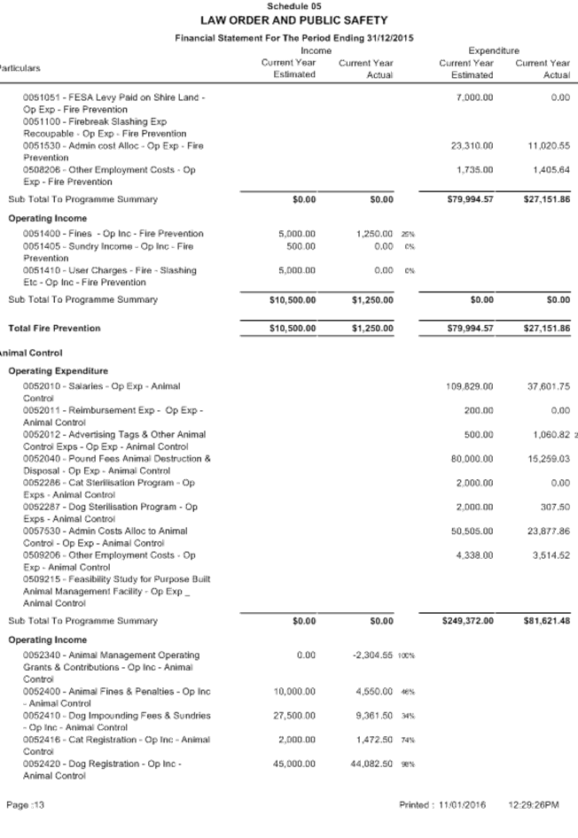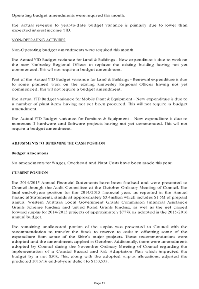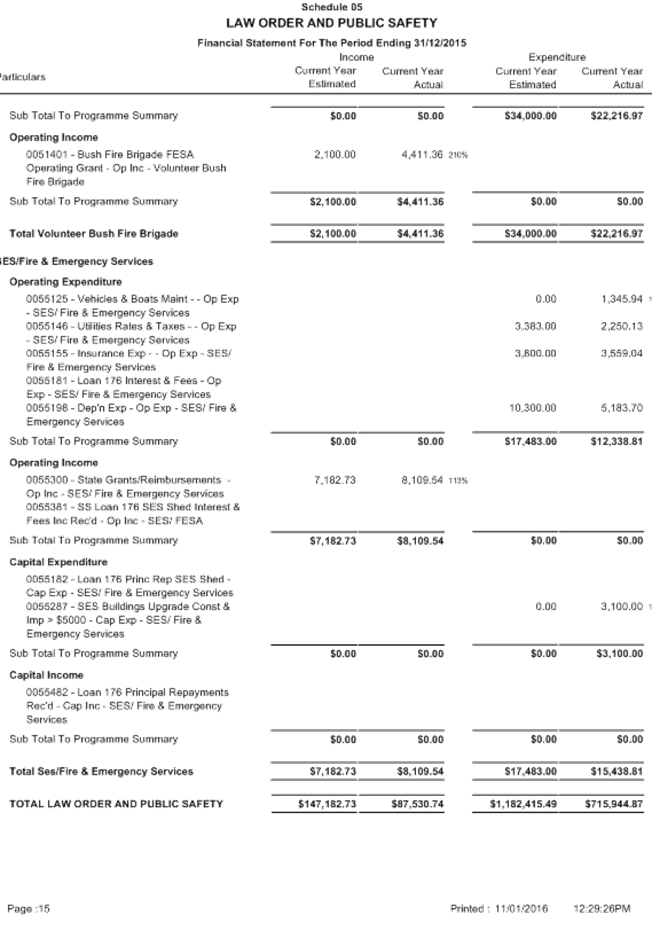 SUMMARY: The Audit Committee is requested to consider results of the mid year review of the Shire’s budget for the period ended 31 December 2015, including proposed budget amendments.