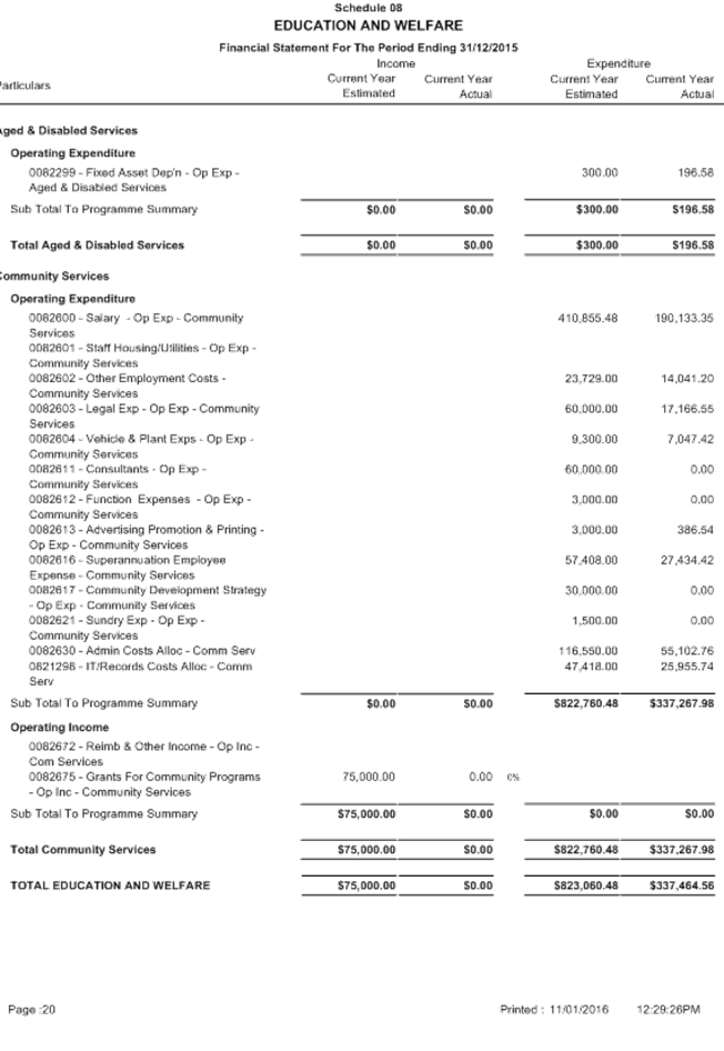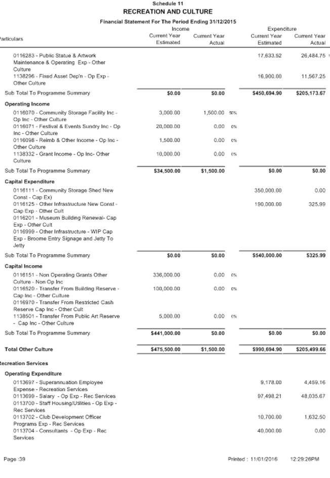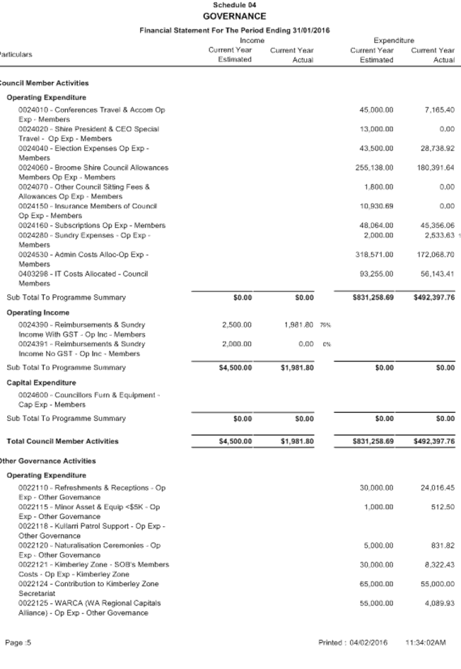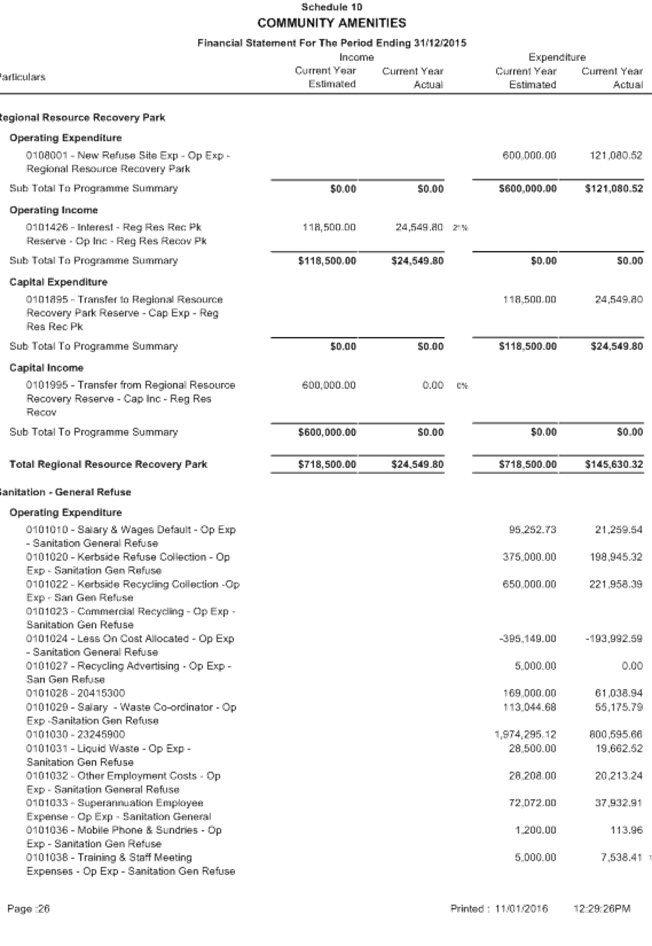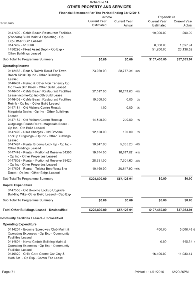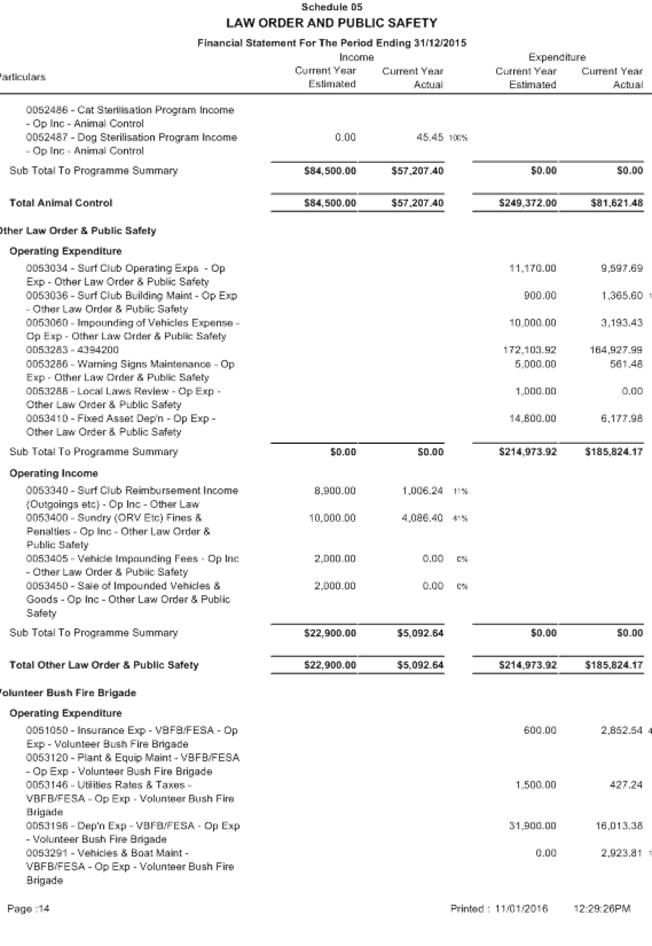 SUMMARY: The Audit Committee is requested to consider results of the mid year review of the Shire’s budget for the period ended 31 December 2015, including proposed budget amendments.