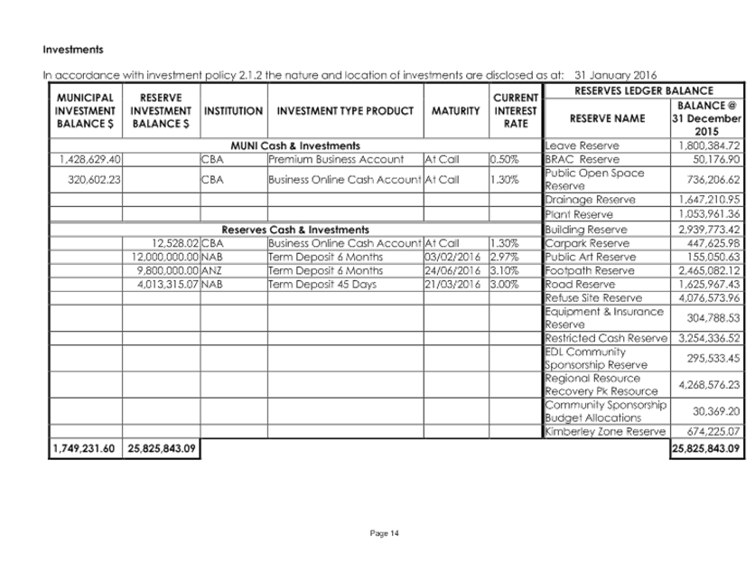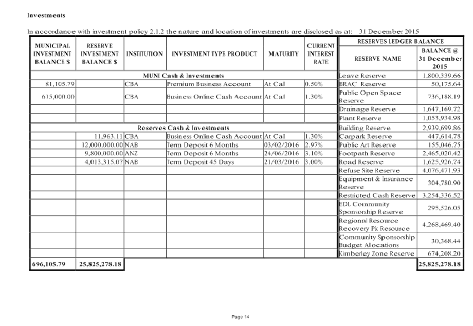 Following consideration by the Audit Committee, it is proposed to present this item to the Ordinary Meeting of Council to be held on 25 February 2016.