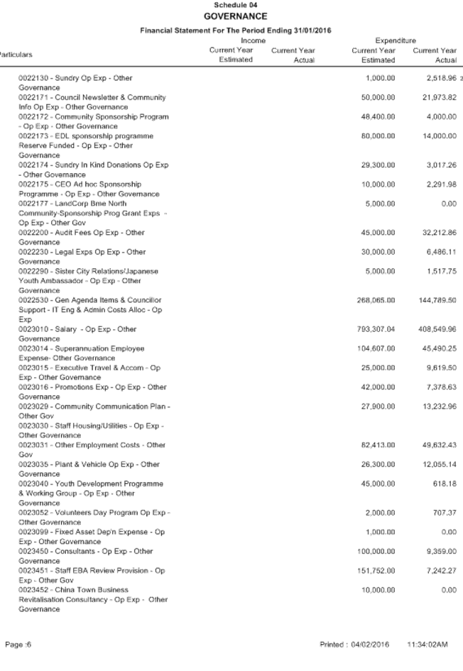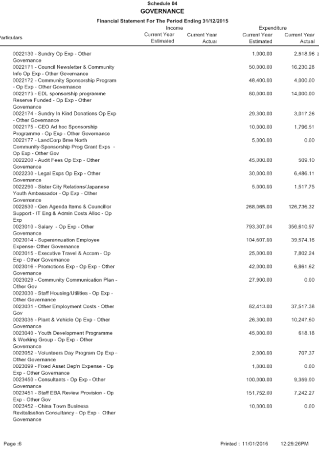 The 2nd Quarter Finance and Costing Review (FACR) was conducted in January reviewing income and expenditure against budget for the period ending 31 December 2015. The Executive Management Group considered the results of the FACR on Thursday, 4 January 2015 and, following final adjustments, it is now presented to the Audit Committee for consideration. The 2nd Quarter FACR is intended to be Council’s formal mid year budget review process.