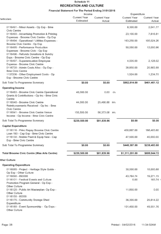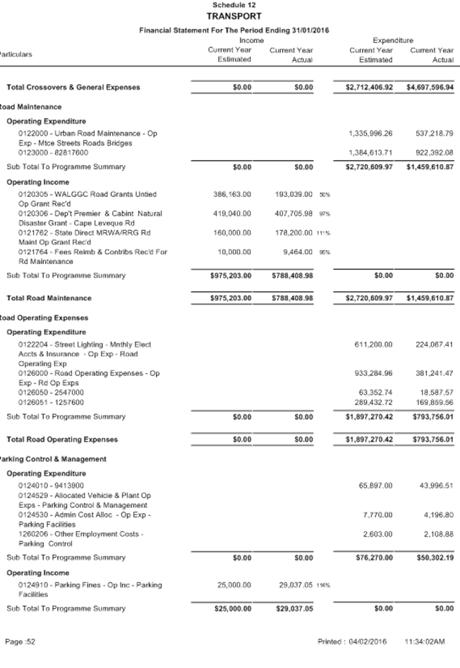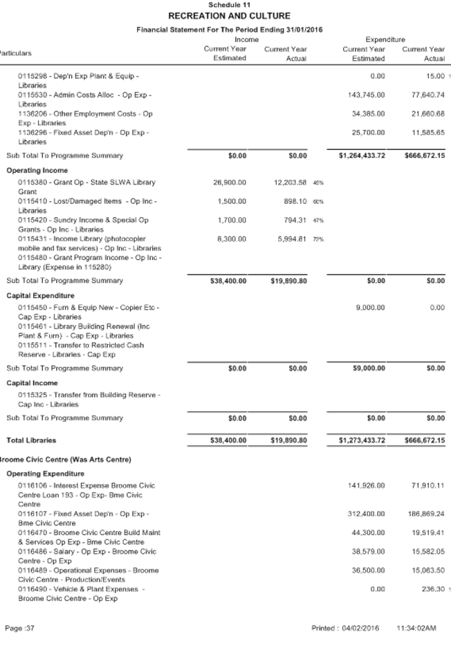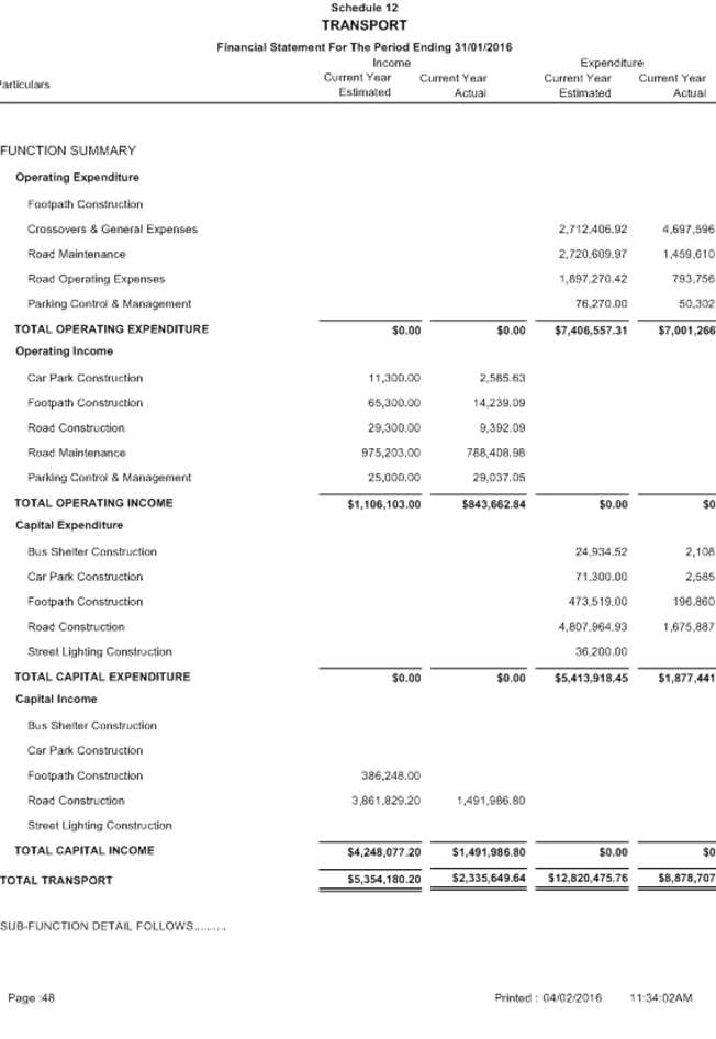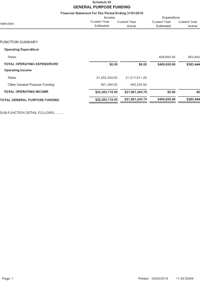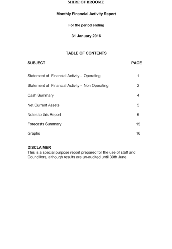 Attachment 1 January 2016 - Monthly Financial Report 701