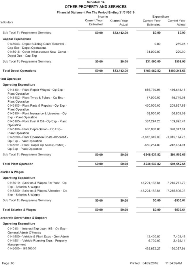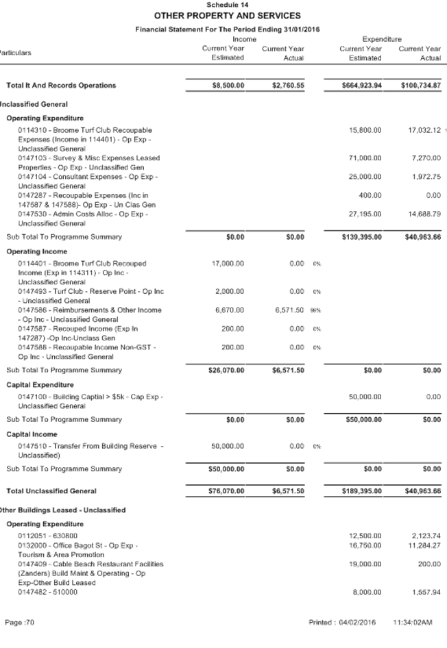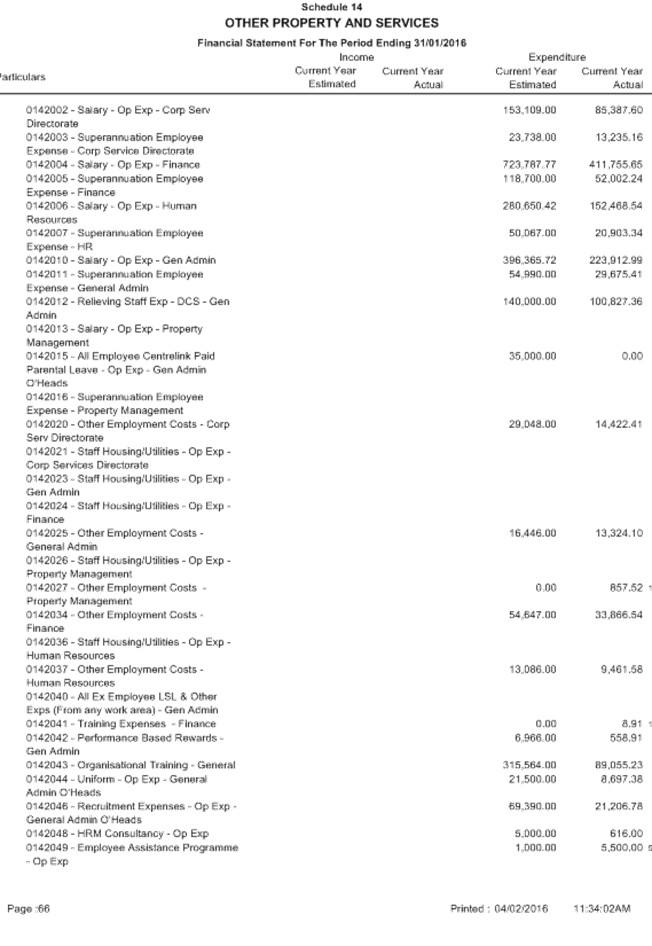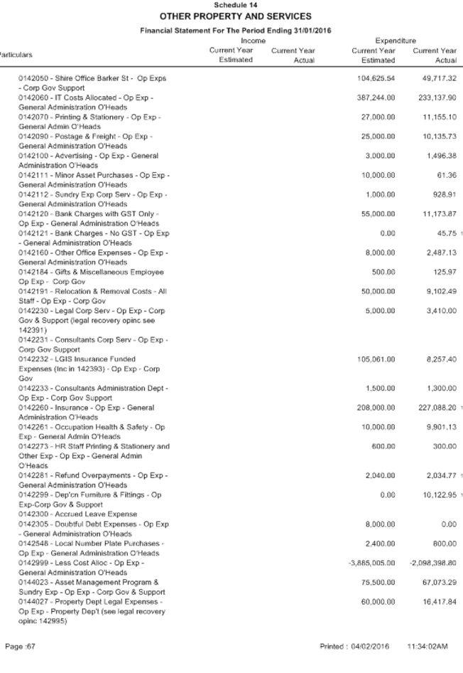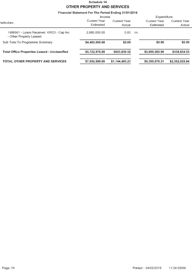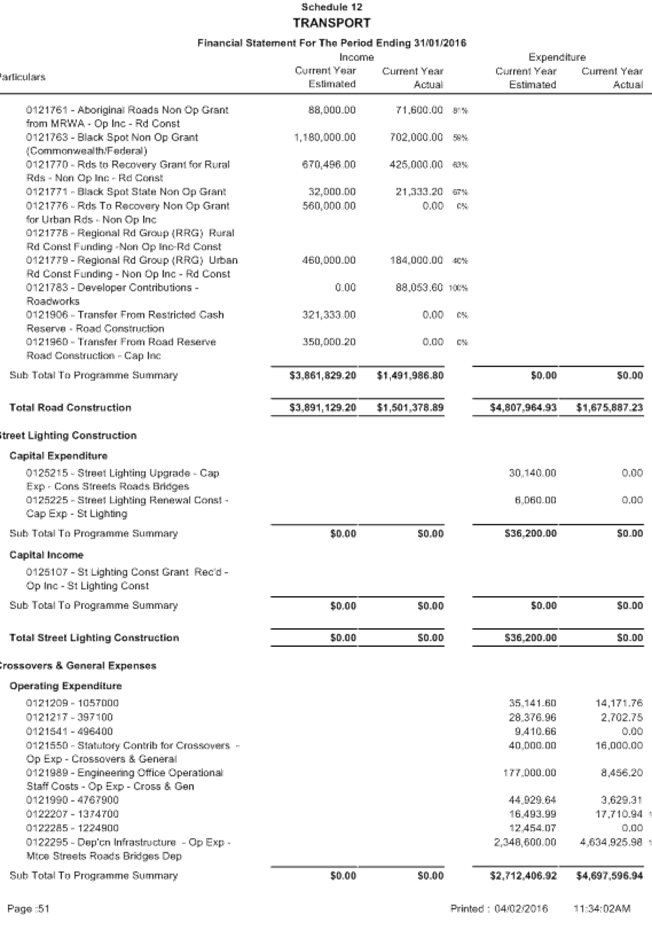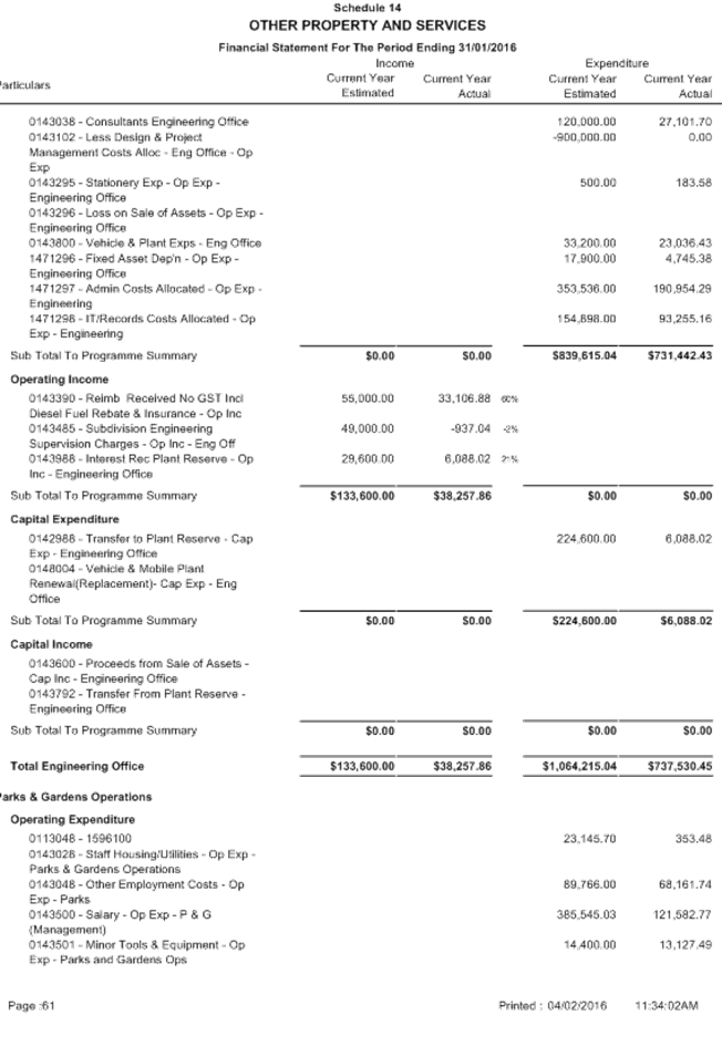 Attachment 1 January 2016 - Monthly Financial Report 701