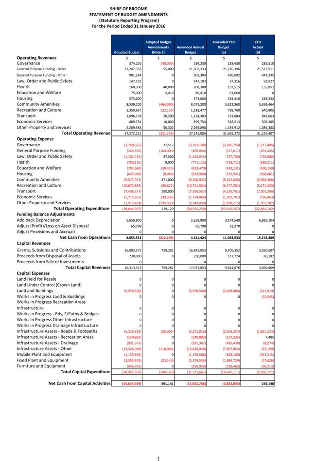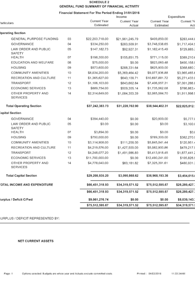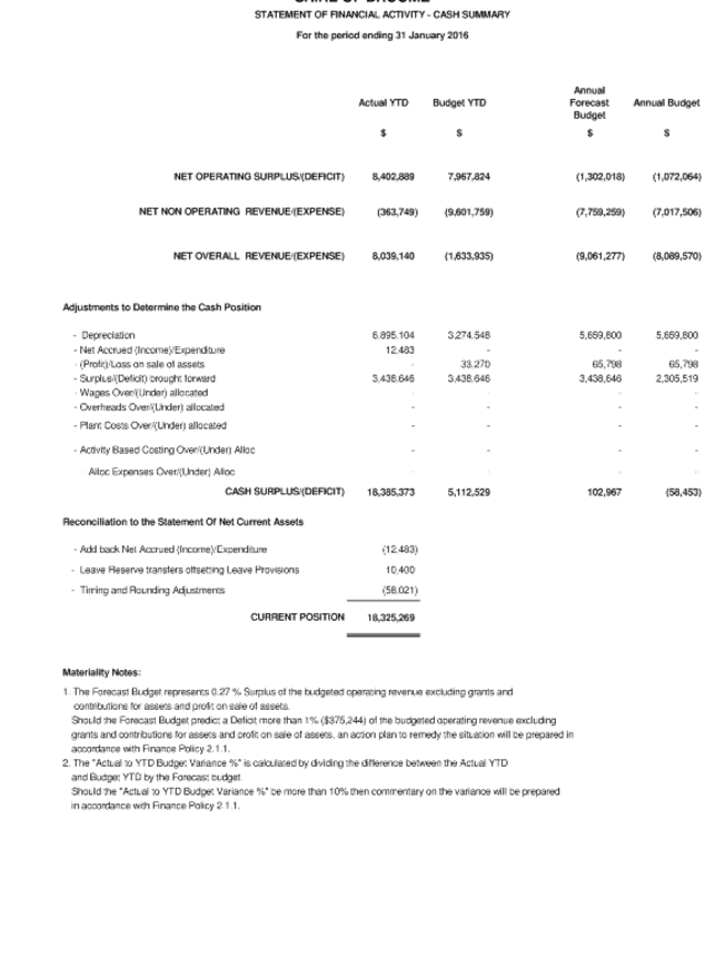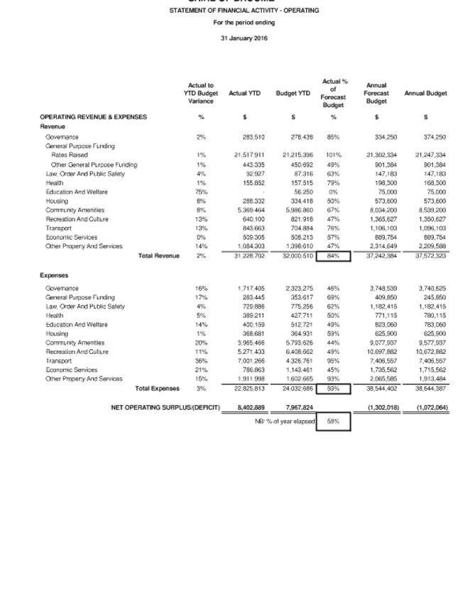 9.4.2 MONTHLY STATEMENT OF FINANCIAL ACTIVITY REPORT - JANUARY 2016