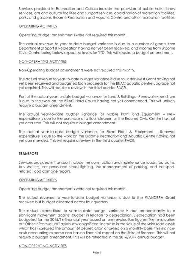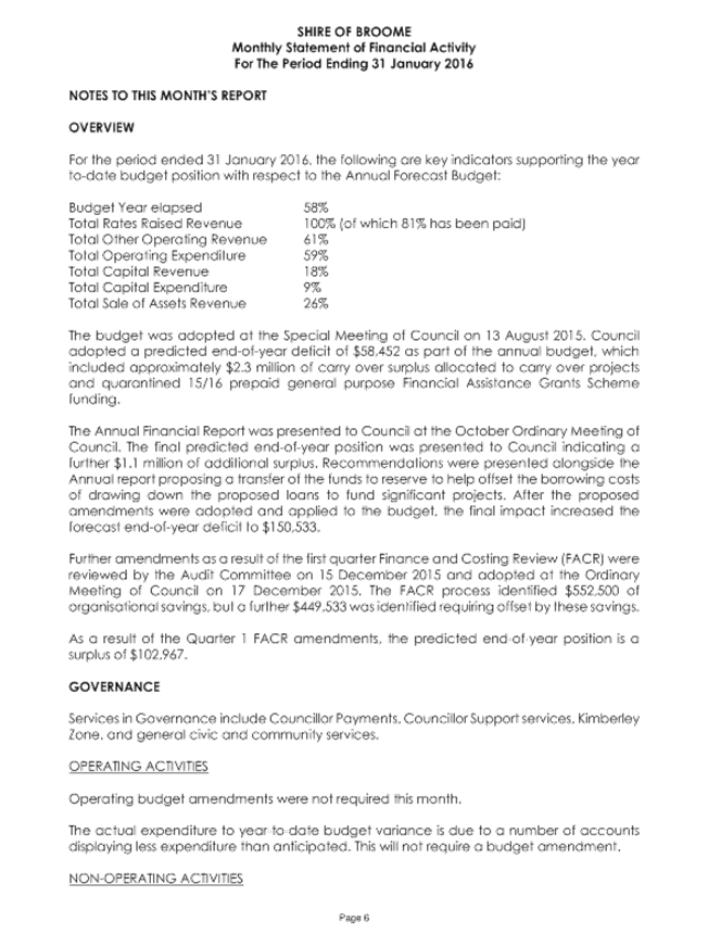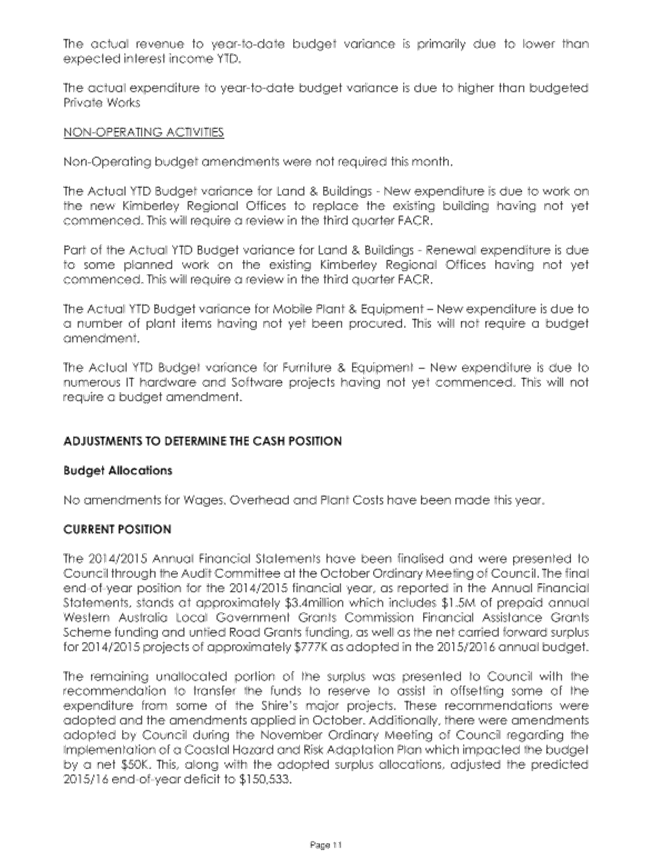 5.2 2015/2016 MID YEAR BUDGET REVIEW - 2ND QUARTER FACR LOCATION/ADDRESS: Nil APPLICANT: Nil FILE: FRE02 AUTHOR: Senior Finance Officer CONTRIBUTOR/S: Nil RESPONSIBLE OFFICER: Manager Financial Services DISCLOSURE OF INTEREST: Nil DATE OF REPORT: 2 February 2015 |