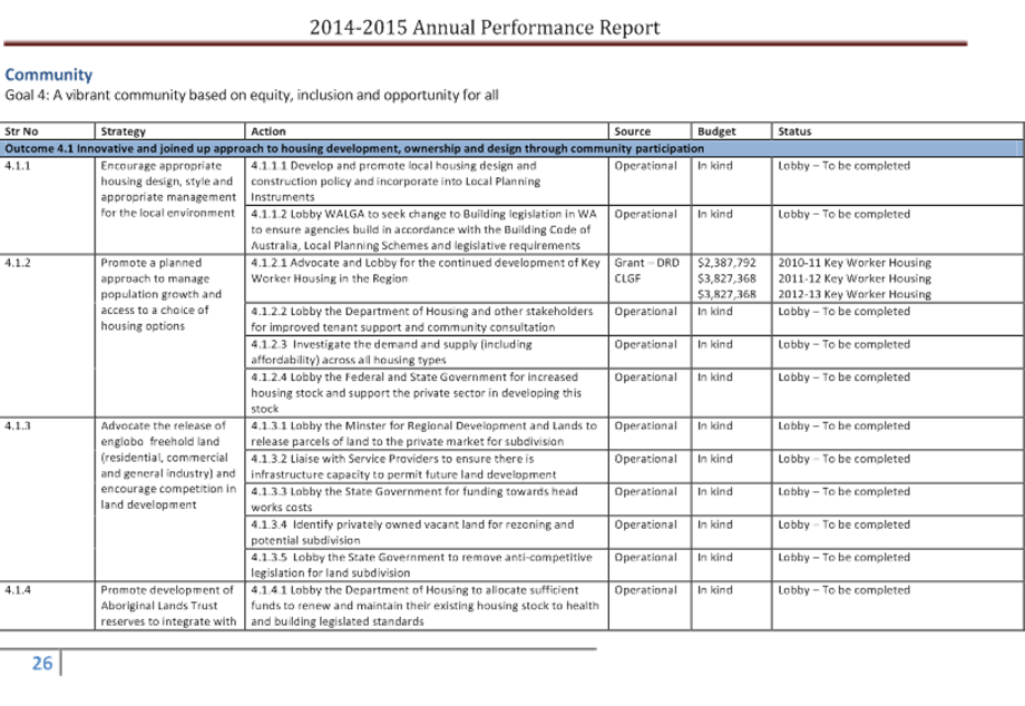 The Local Government Act 1995 requires that each local government carry out a compliance audit for the period 1 January to 31 December each year. The Compliance Audit is an in-house self audit that is undertaken by staff and is to be submitted to the Department of Local Government and Communities by 31 March each year.