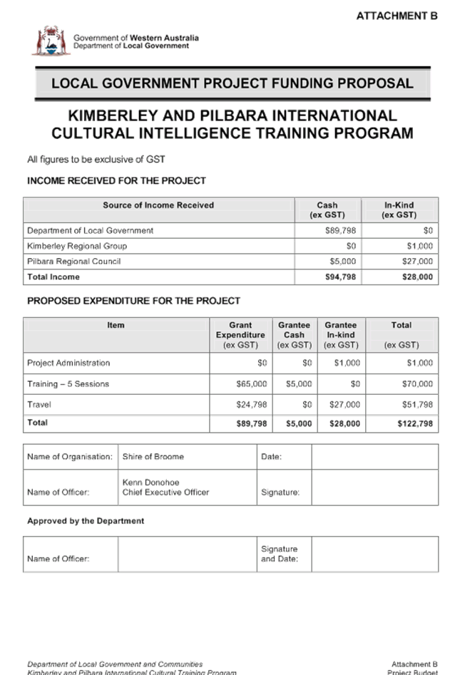 1. LOCAL AUTHORITY : Shire of Broome