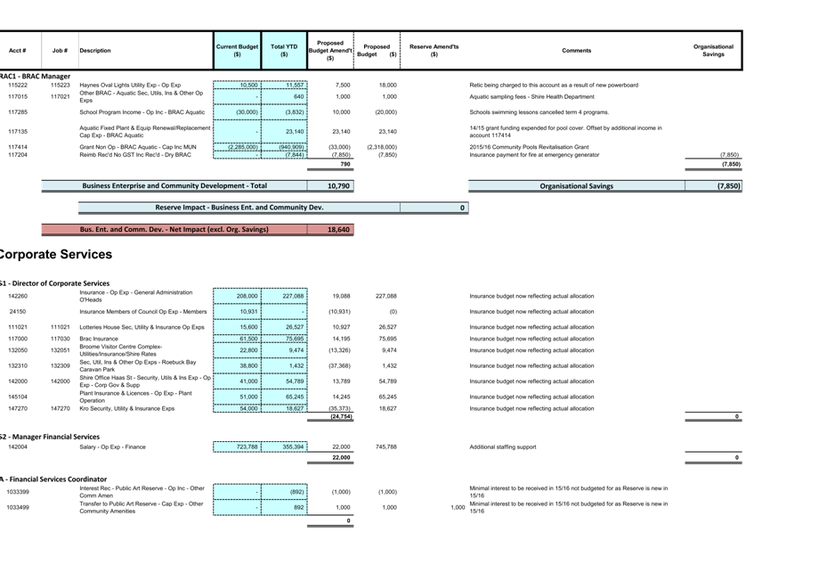 It should be noted that the 2nd Quarter FACR identified $7,850 as organisational savings due to an unbudgeted insurance claim on an emergency generator. Should Council approve the recommendation to transfer these funds to reserve, the adjusted end-of-year deficit would be $38,178.