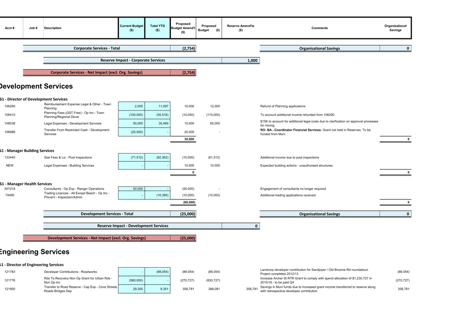 The net result of the statutory mid-year budget review estimates is a $38,178 deficit if the proposed use of the organisational savings is accepted.