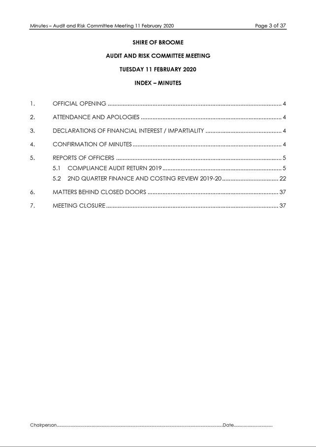 HELD IN THE Council Chambers, Corner Weld and Haas Streets, Broome, ON Thursday 27 February 2020, COMMENCING AT 5:00 PM.